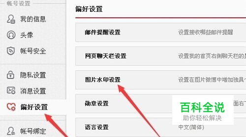 在弹出的 偏好设置窗口中选择 图片水印设置,根据喜好更改 水印位置和水印样式