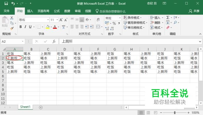 在日常工作中,我们的表格往往十分的长或者叫做十分的宽,那么如果我们需要对某一行,某一列采取操作的话,要怎么办呢,这里我们以A2所在的行为例,进行操作。首先选择A2单元格。