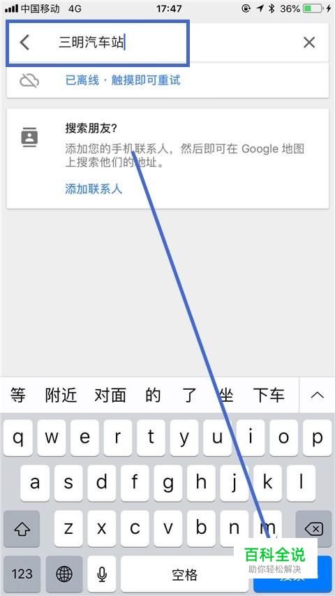 然后输入你想要去的地方并点击搜索,这样谷歌地图就能够给你导航了。