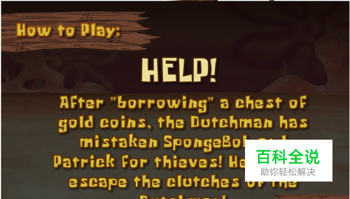 海绵宝宝兄弟不知道怎么上了一家荷兰人的海盗穿上,为了求生不得不扛着自己的宝箱逃生...游戏加载完后点击PLAY→NEXT开始游戏。方向键控制海绵宝宝移动,按一下空格键是跳跃,长按住空格键是俯下身体!成功逃出海盗船!