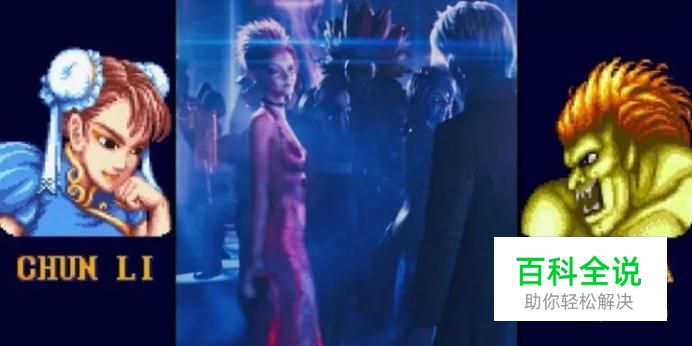 《街头霸王》,一款日本单机格斗游戏,相信很多人玩过。电影里面有角色形象出现。图中女主角身后,春丽和布兰卡在跳舞。