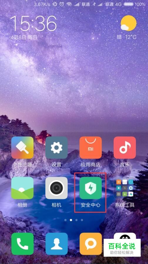首先,确保红米Note3手机系统为开发版,然后点击MIUI桌面上的“安全中心”应用图标。