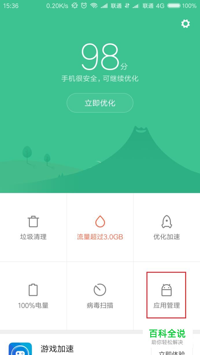 在安全中心应用界面中,点击页面右侧“应用管理”菜单,