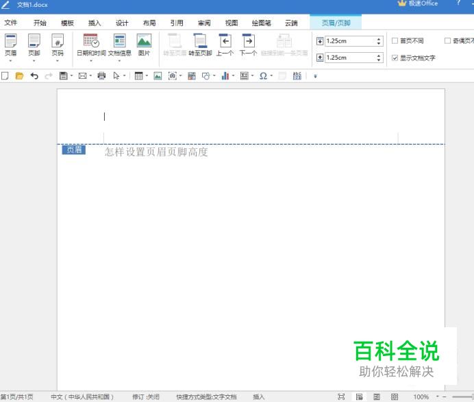 极速写作(Word)怎样设置页眉页脚高度