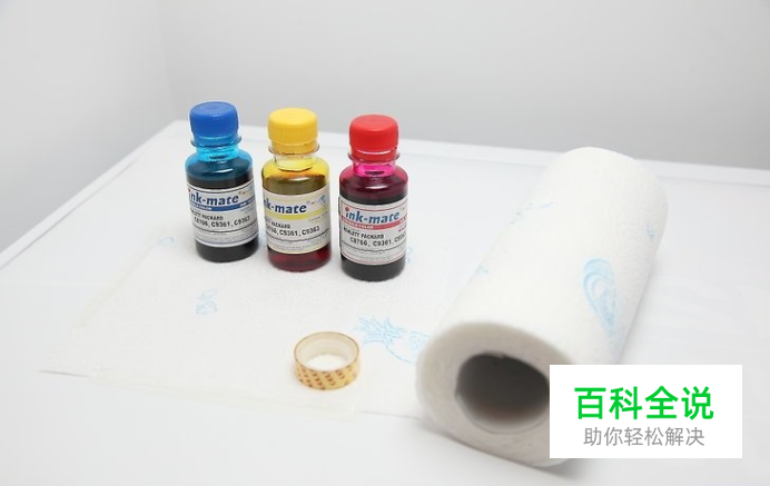 取一纸巾,将它对折2次。在纸巾上补充墨水,让渗漏的墨水滴落在纸巾上。
