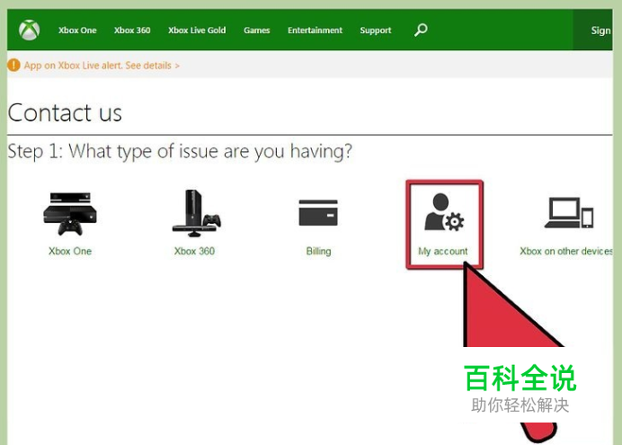 点击最贴近你的问题的分类。从“Xbox 360”、“我的账户”和“账单”中,选择问题的类别。如果你想注销Xbox Live的会员,就点击“我的账户”。