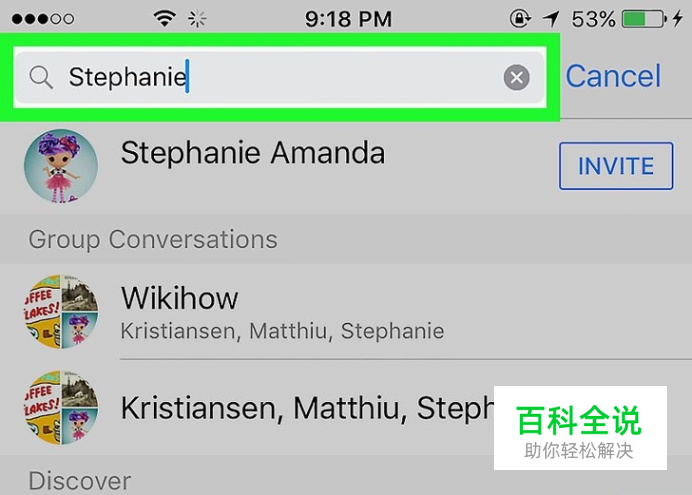 在搜索框中输入好友的名字。搜索框位于屏幕的顶部,输入好友的名字,接着会出现匹配的用户列表。