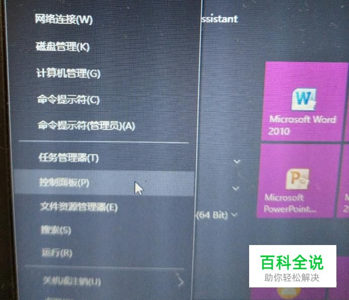 首先我们鼠标右击电脑桌面左下角的win键,在弹出来的选项中选择“控制面板”。