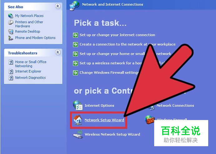 从“开始”菜单中单击“控制面板”。单点“网络与互联网”并选择“网络与共享中心”。