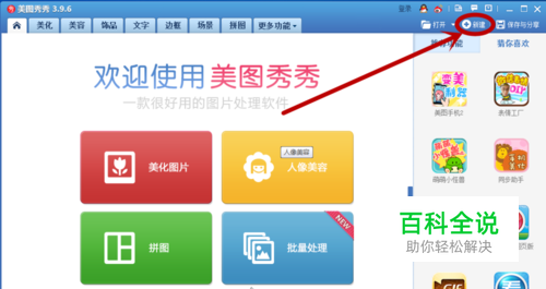 首先打开美图秀秀最新版主界面,我们选择打开右上角的“新建”按钮。