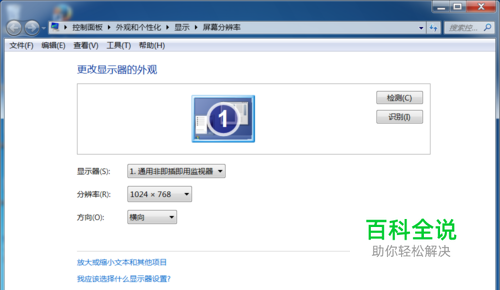 检查现在的屏幕分辨率,然后将屏幕分辨率调高,有时可能一次调不好,所以我们先把分辨率调整到一个相对中间的设置