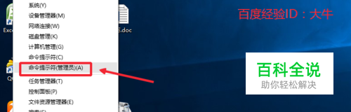 首先在windows10的 开始菜单上点击右键,打开 命令提示符【管理员】进入。