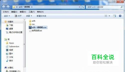 下载“adb一键破解”工具包,并解压,运行“adb一键破解.exe”文件。