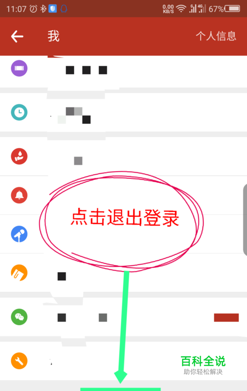 点击头像打开我的界面,滑动屏幕点击最下面的退出登录。如图所示