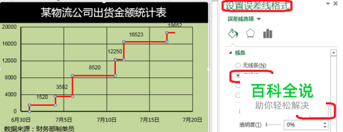 4.图表工具——格式——系列出货金额Y误差——设置所选内容格式。 负偏差。