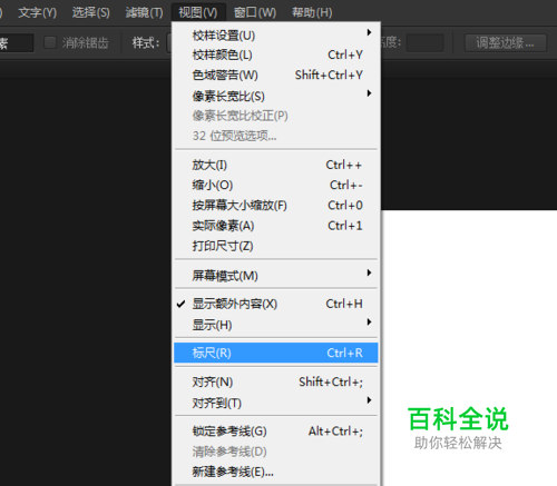 点击“视图”—“标尺”或者快捷键“ctrl+r” 标尺即显示出来