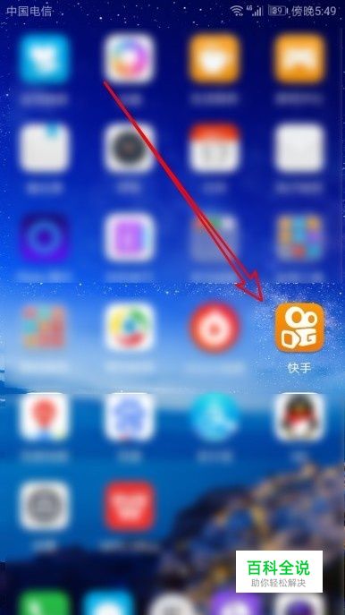 在手机上左右滑动屏幕,在屏幕上找到安装好的“快手”的图标。