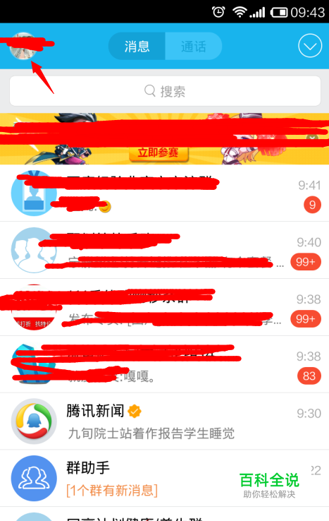 打开登陆的QQ,点击下方的消息,然后找到左上角的头像点击进入设置。