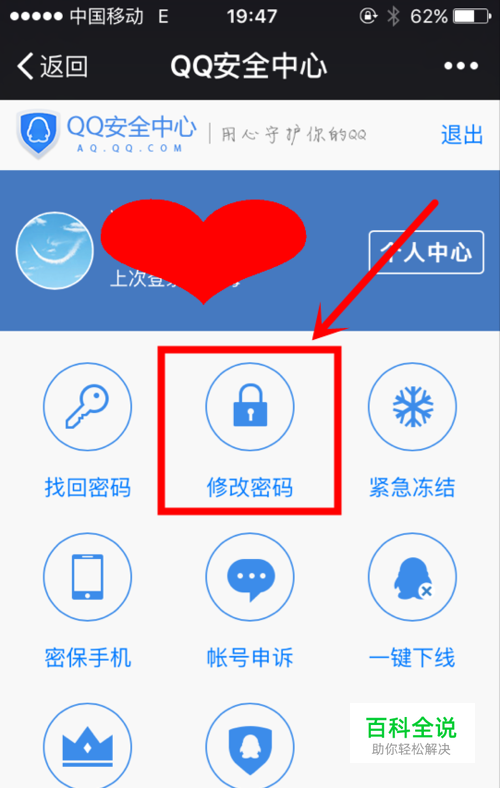 首先我们前往第一个,更改QQ密码,在弹出的界面选择“修改密码”