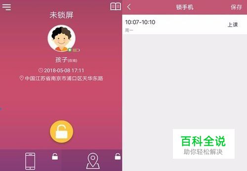 时间设置功能可以安排孩子上课、作业和睡眠的时间,使孩子在这三个时间段远离手机,安心学习,充分休息。此时段中孩子的手机将会被自动锁屏,进入时间管理模式,可以避免孩子使用手机浏览网页、使用应用、玩游戏等等。时间管理模式下只可以拨打或接听预设的“亲情号码”。等设置的时间结束后,孩子的手机将自动退出时间管理模式。