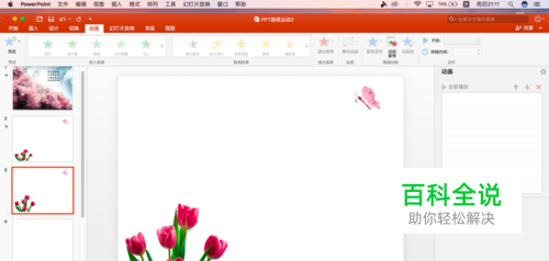 PPT中动画的功能其实是很强大的,在之前的一次全国PPT大赛中,名为《惊变》的PPT作品就证实了PPT的强大,所以要实现蝴蝶飞舞的动作还是十分简单的