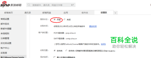 设置前我们先作准备工作,很多邮箱都是一样的设置,要先登陆你的帐号邮箱,找到设置的"POP/imap/stmp"设置为“开启”