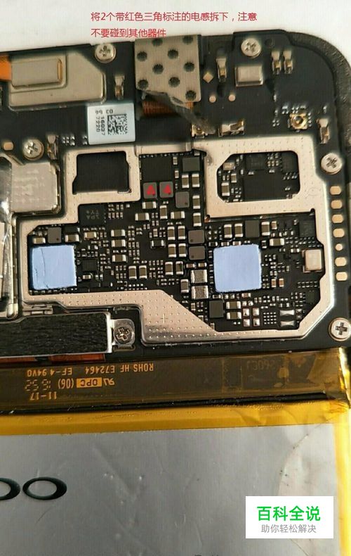 用镊子将图中的原件撬下(如有电烙铁加热会更好取)如上图,注意不要碰到其他原件,拆下后恢复机器其他安装(贴条,电池线及后盖等)重新开机即可
