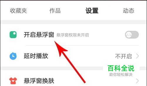 此时我们就可以在第一行位置看到“开启悬浮窗”设置项,可见其后面的锁定按钮是被关闭的,也就是说悬浮功能是被关闭的