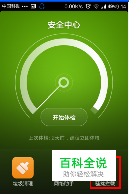 选择安全中心里面的骚扰拦截,打开骚扰拦截,然后右击手机右边的菜单栏。