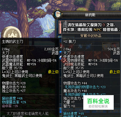 艾尔文防线的铁匠林纳斯,出售生锈的武士刀。