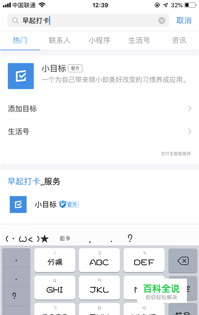 点击之后,我们输入早起打卡选项,然后点击弹出的小程序。