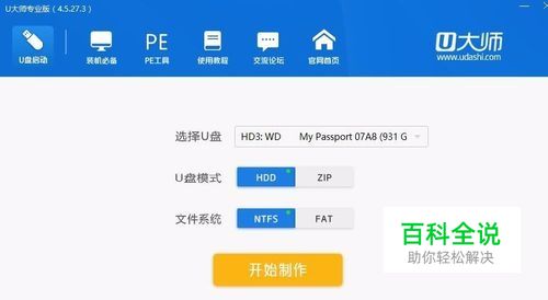 首先将移动硬盘接上数据线,插到USB3.0口,打开安装好了的启动盘制作工具(U大师),在选择U盘项看到硬盘后,直接点击开始制作