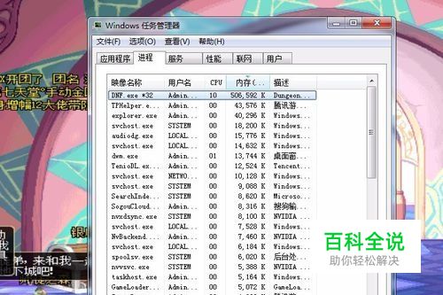 1.登录DNF,俗称上号.然后按下Ctrl+Shift+Esc.目的是打开任务管理器.如图可以看到左下角的进程数有51个.和物理内存占用率.