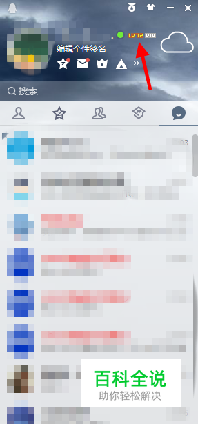 首先在电脑上登录QQ,并点击下图红色剪头所指的“我的Q等级”按钮。