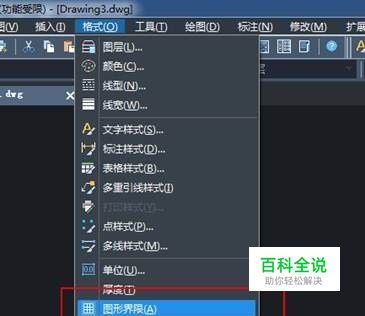 1、打开CAD,然后输入limits的命令,再点击格式——图形界限,如下图。