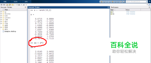 单个数值与矩阵的乘除法比较好说: 如下图,先来一个随机矩阵,乘以3后,可以看到矩阵的每个项都乘以了3. 都除以3.