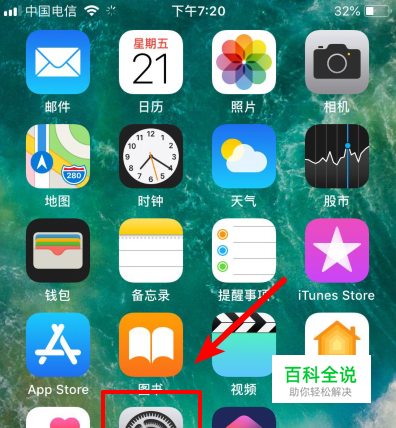 解锁我们的苹果手机,然后选择手机的设置图标进入。