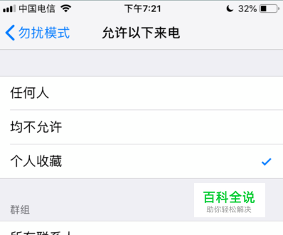 在允许以下来电的设置中,我们选择页面中的“所有联系人”,选择完毕后,苹果手机只能接到联系人来电提醒。