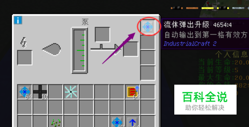 把泵放到水底(可以任意位置)! 在鼠标右键单击泵, 把【流体弹出升级】放进泵里面,如下图