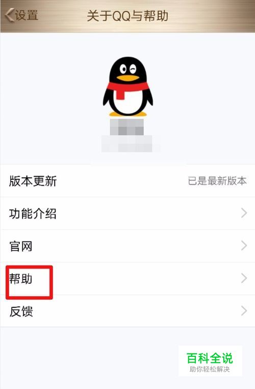 再接着,进入到【关于QQ与帮助】的界面之后,需要点击一下【帮助】这个选项。 如图所示