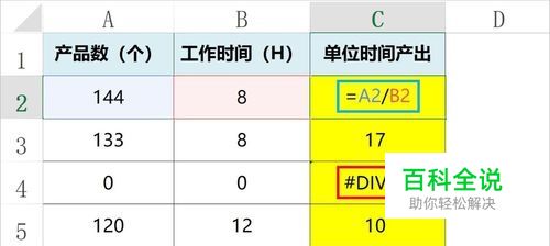 案例1:错误结果显示为0。 我们要计算每天单位时间(每小时)的产出,使用产品数除以工作时间。 但是, 个别天数(如:休息天)产品数和工作时间都为0,我们用0除以0,会显示错误的结果。