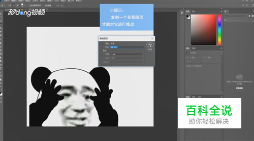在背景处单击鼠标右键,点击“复制图层”,弹出的窗口点击“确定”。