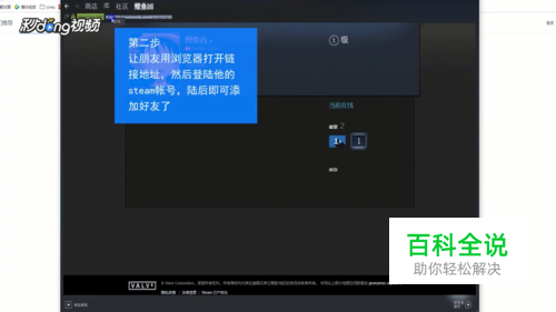 让朋友用浏览器打开链接地址,然后登录他的steam账号,登录了后即可添加好友了。