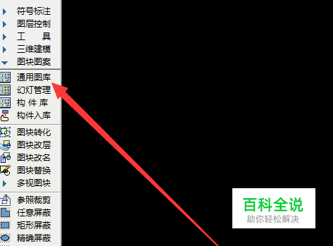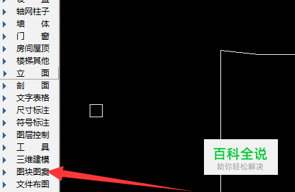 当我们需要插入厕所用具时,单击软件左侧工具条,找到图块图案。 注意:在插入窗时,需要先绘制好墙体。