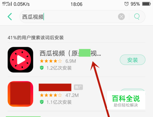 然后点击右侧“安装”,下载西瓜视频软件并安装,如图所示
