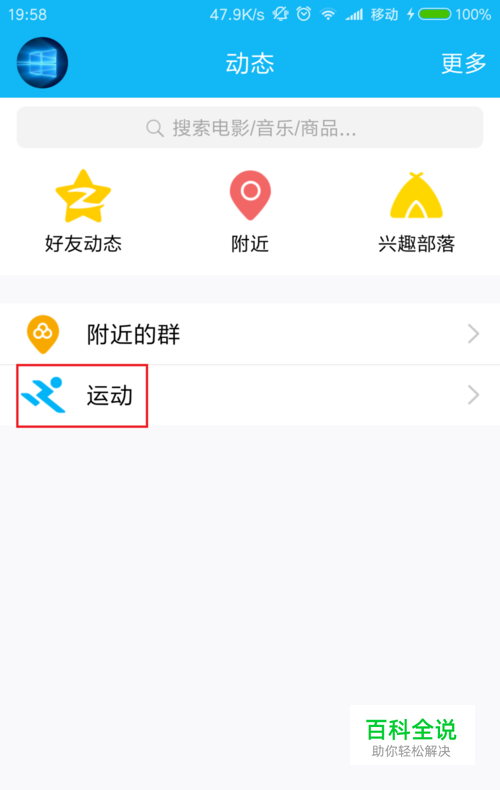 在更多页面中,我们可以看到“ 运动”选项,点击运动选项之后,我们点击图片中圈中的位置进行设置。