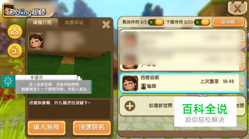 进入迷你世界后,点击开始游戏,创建或者进入一个游戏存档,并进入游戏。