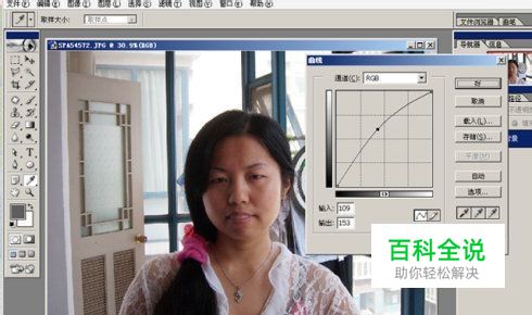 由于我这张照片是被光所以很黑,先用Ctrl+M 调整一下曲线,把亮度提高