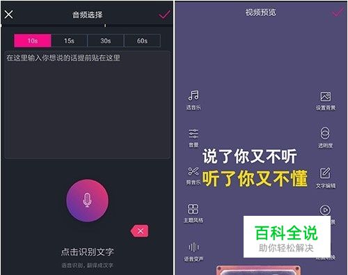 文字视频页面,你可以录音,也可以导入音频或视频,点击右上角对勾,软件会根据音频识别出文字,转化成文字跳转的效果。 视频预览页面,你可以改音乐,换背景,变音,编辑文字,调整切换动画,视频的方方面面,各种效果,都可以一键式编辑,需要素材的地方软件也都会提供,编辑完成,点击右上角对勾合成就制作好了。