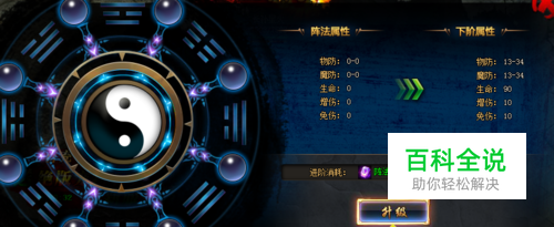 打开阵法的面板,升级阵法,提升生命、增伤、免伤等基本的属性,如图所示